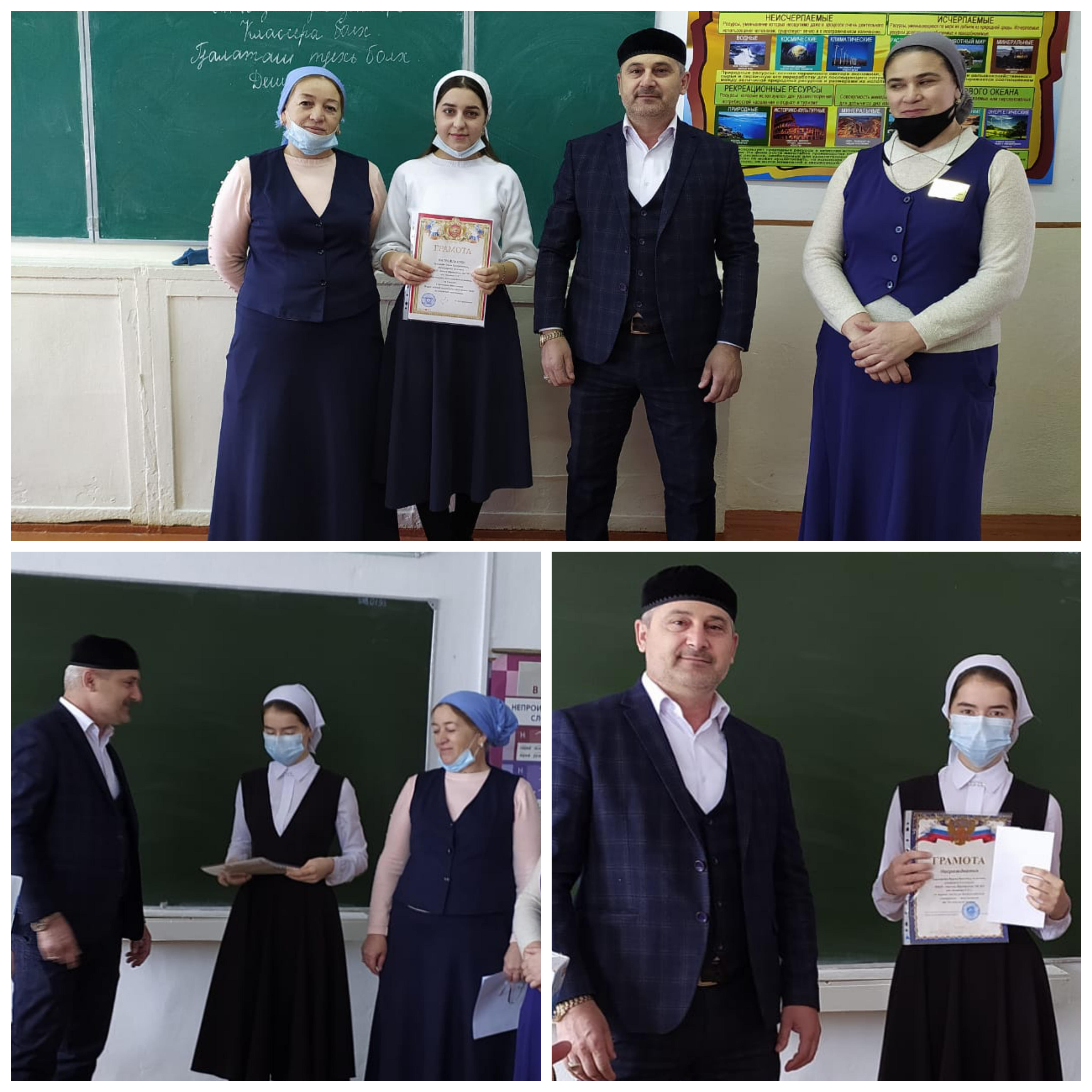 Директор МБОУ "Энгель- Юртовская СШ 1 им. Осмаева У.Г." Абуев А.А. наградил почётными грамотами победителей муниципального этапа Всероссийской олимпиады школьников по чеченскому языку среди 11 классов ученицу 11а класса Сараханову Марху и призёра олимпиады по чеченской литературе среди 10 классов ученицу 10 б класса Чумакову Элизу.