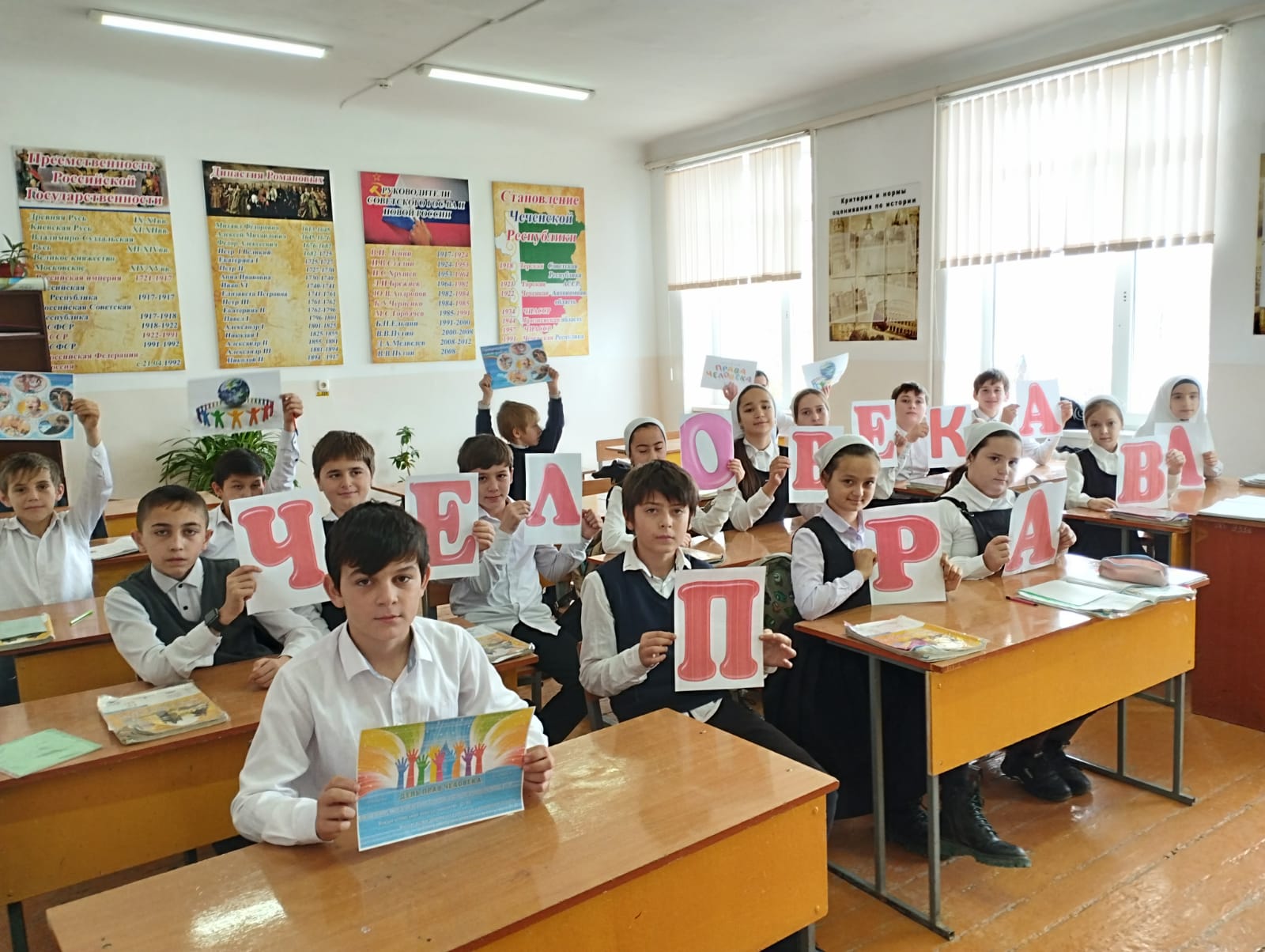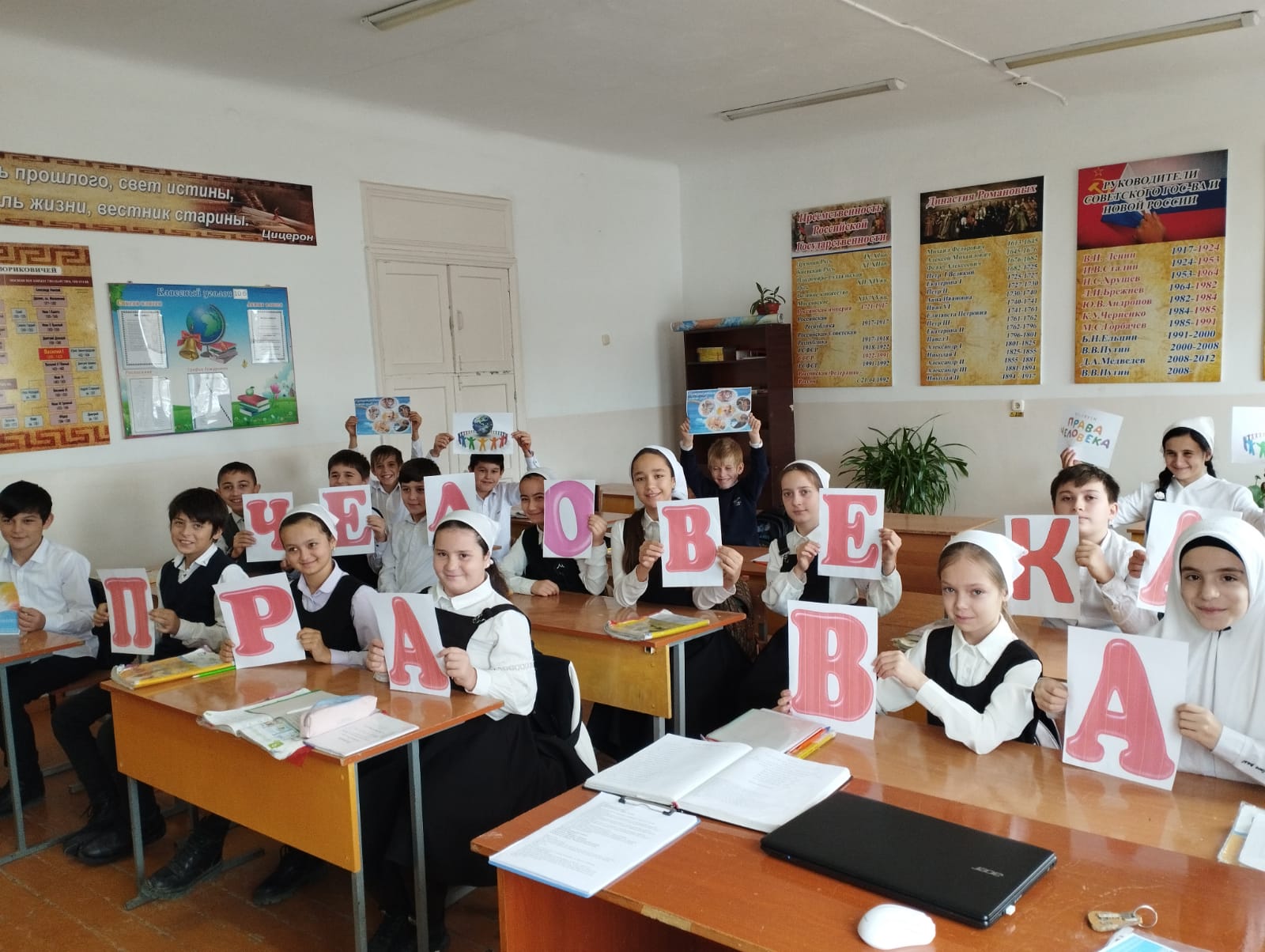 В МБОУ «Энгель-Юртовская СШ №1 им.Осмаева У.Г.» в рамках празднования Международного дня прав человека во всех классах была организована акция - Всероссийский единый урок «Права человека», направленная на формирование правовой культуры молодых граждан нашей страны.