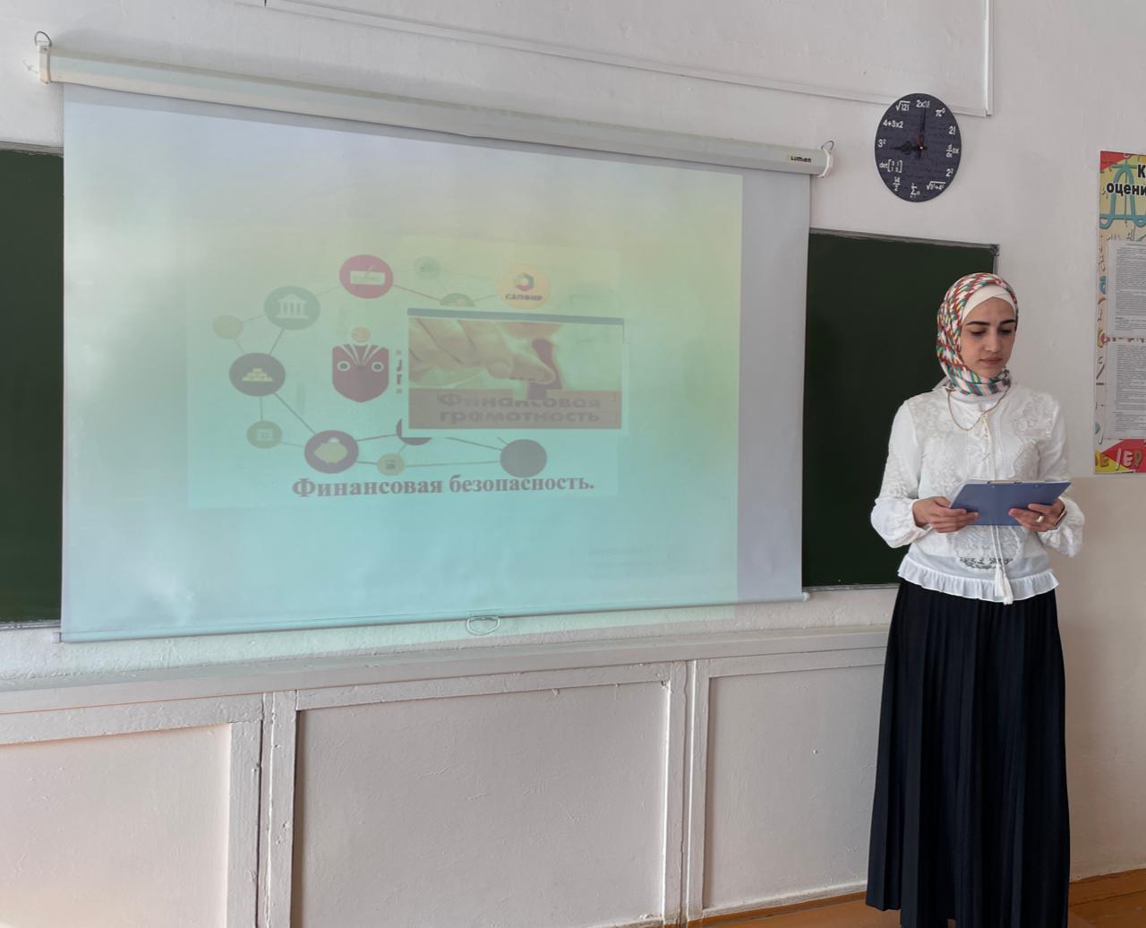 24.03.202324 марта 2023г. в МБОУ «Энгель-Юртовская СШ1 им.Осмаева У.Г.» учителем математики Хаджимурадовой Барият С-М был проведен урок по финансовой безопасности в 10"а"классе.На уроке учащимся был представлен показ презентации «Личная финансовая безопасность».Ребята познакомились с информацией, что даёт финансовая безопасность.