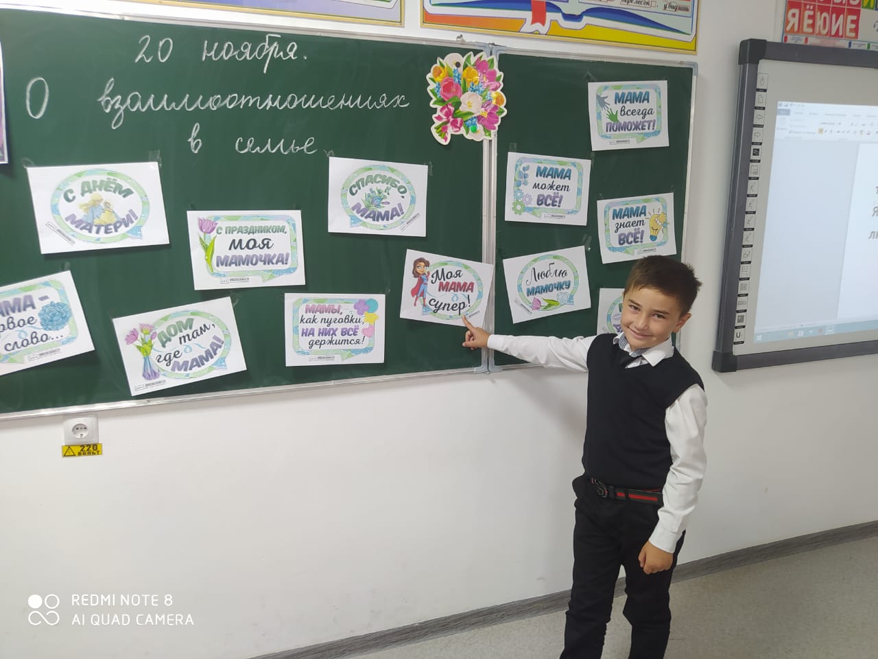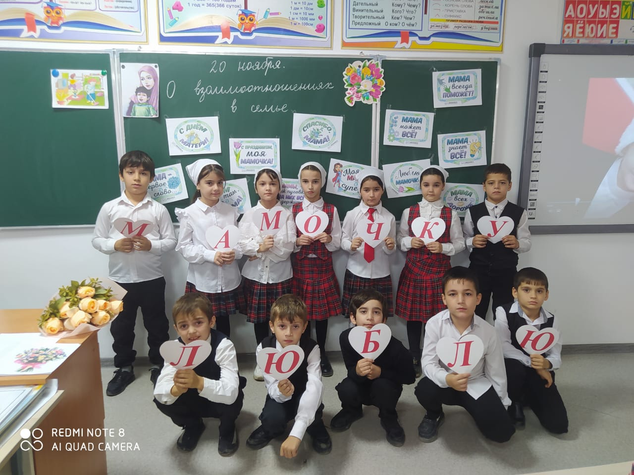 27.11.2023Каждый понедельник первым уроком в школах проходят классные часы "Разговоры о важном".На этот раз обсуждали тему"О взаимоотношениях в семье". Учительница начальных классов МБОУ"Энгель-Юртовская СШ1 имени Осмаева У.Г." Шабазова Зайнап Жамирзаевна рассказала о роли родителей в вайнахской семье и какое место занимает слово мать в душе каждого ребенка."Йалсамане - ненан когаш к1елахь йу" бохучух тешийра хьехархочо.