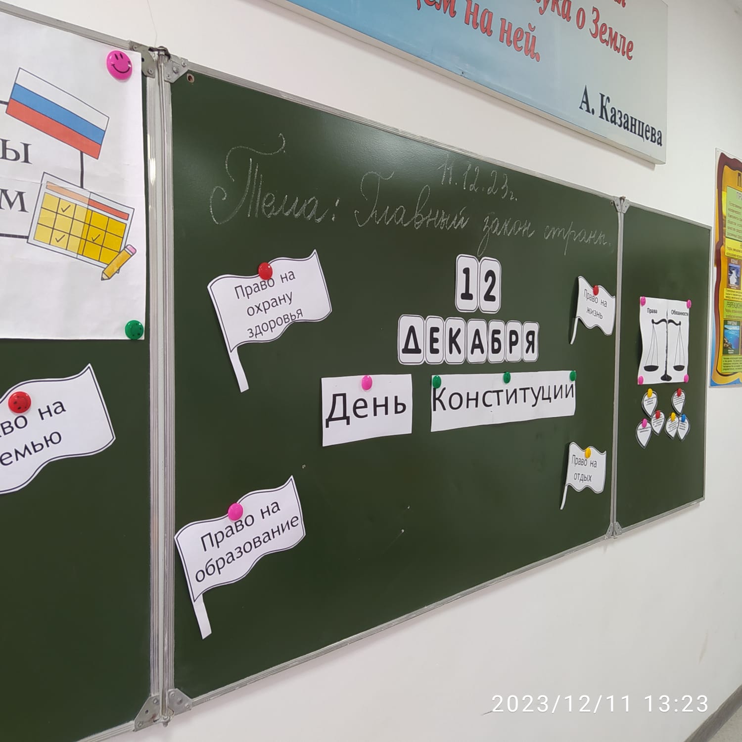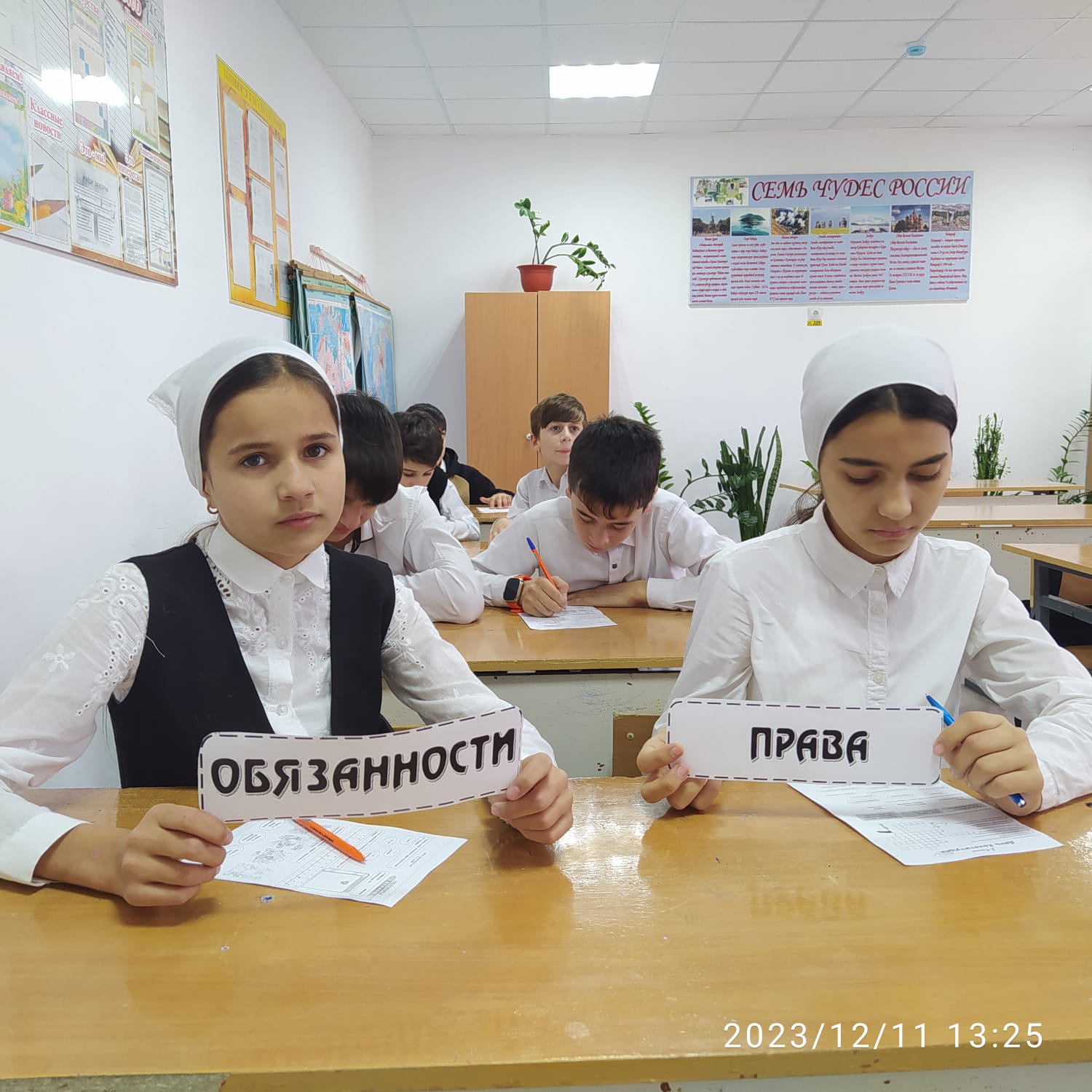 11 декабря 2023г.в МБОУ "Энгель-Юртовская СШ1 имени Осмаева У.Г. учительница технологии и ИЗО Гераева Малхиш Гайрсултановна провела "Разговор о важном" на тему"Главный закон страны" с целью воспитания чувства гордости за свою страну, развитие интереса к истории России, расширение кругозора.