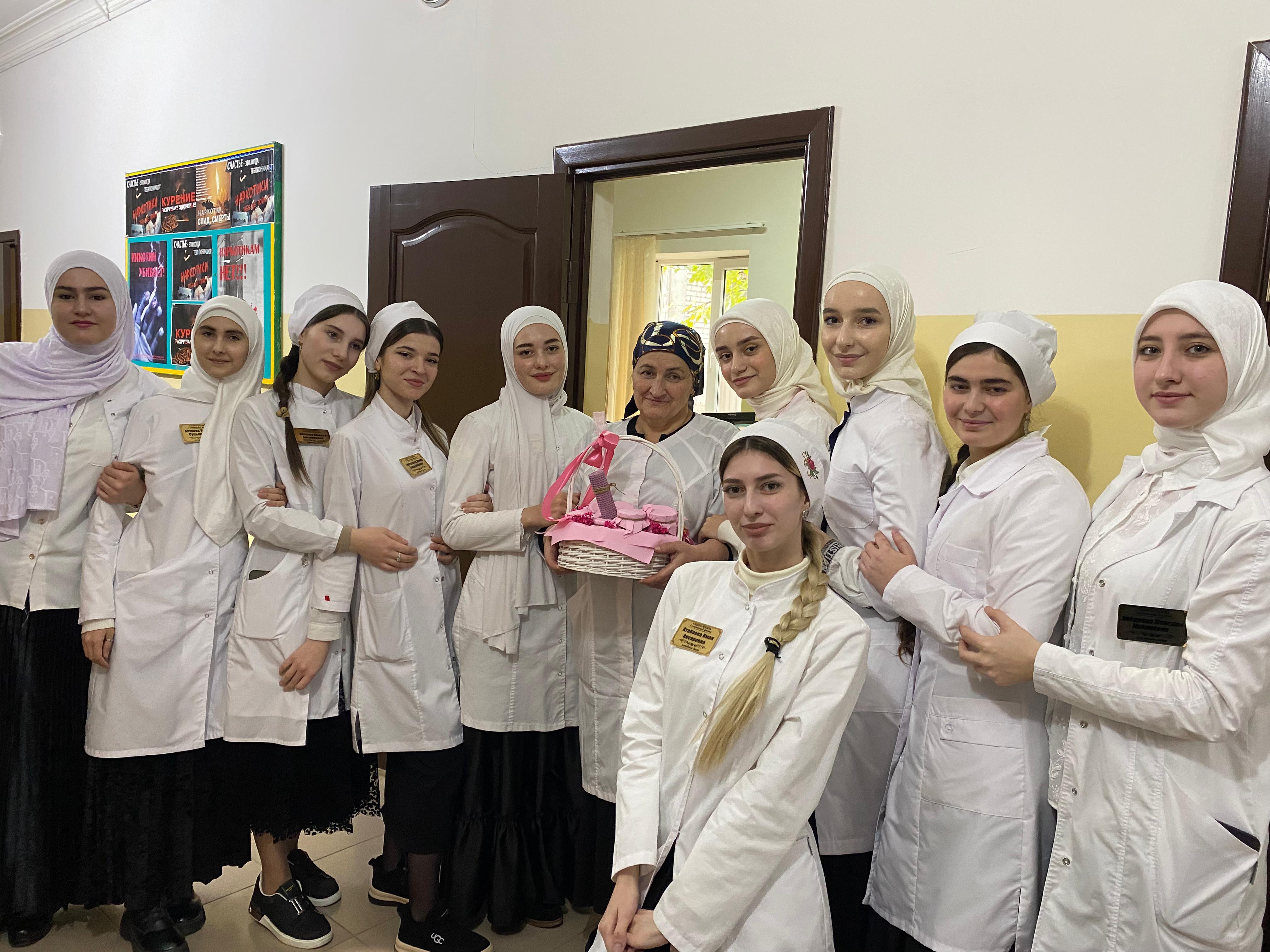 1.Асхабова Алина-студентка Грозненского педагогического университета /иностранный фак./,Байсултанова Марха-студентка Грозненского педагогического университета /иностр.фак./,Самбиева Мата,Байсултанова Зульфия, Эстемирова Макка-студенты Грозненского медицинского колледжа /фельдшерское отделение. В ходе беседы студенты рассказали что значит быть студентом, об учебе, о студенческой жизни, отвечали на вопросы учащихся.