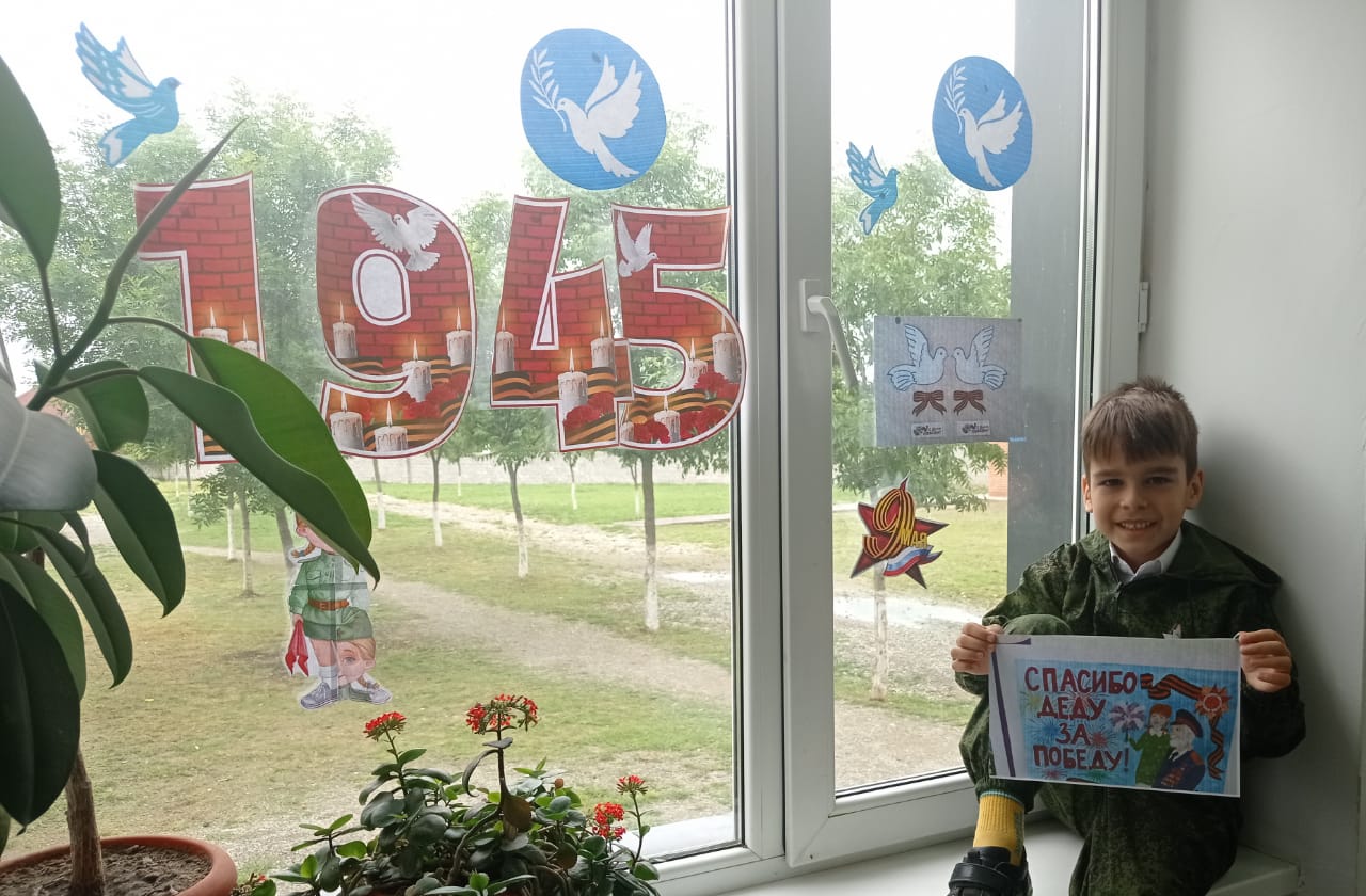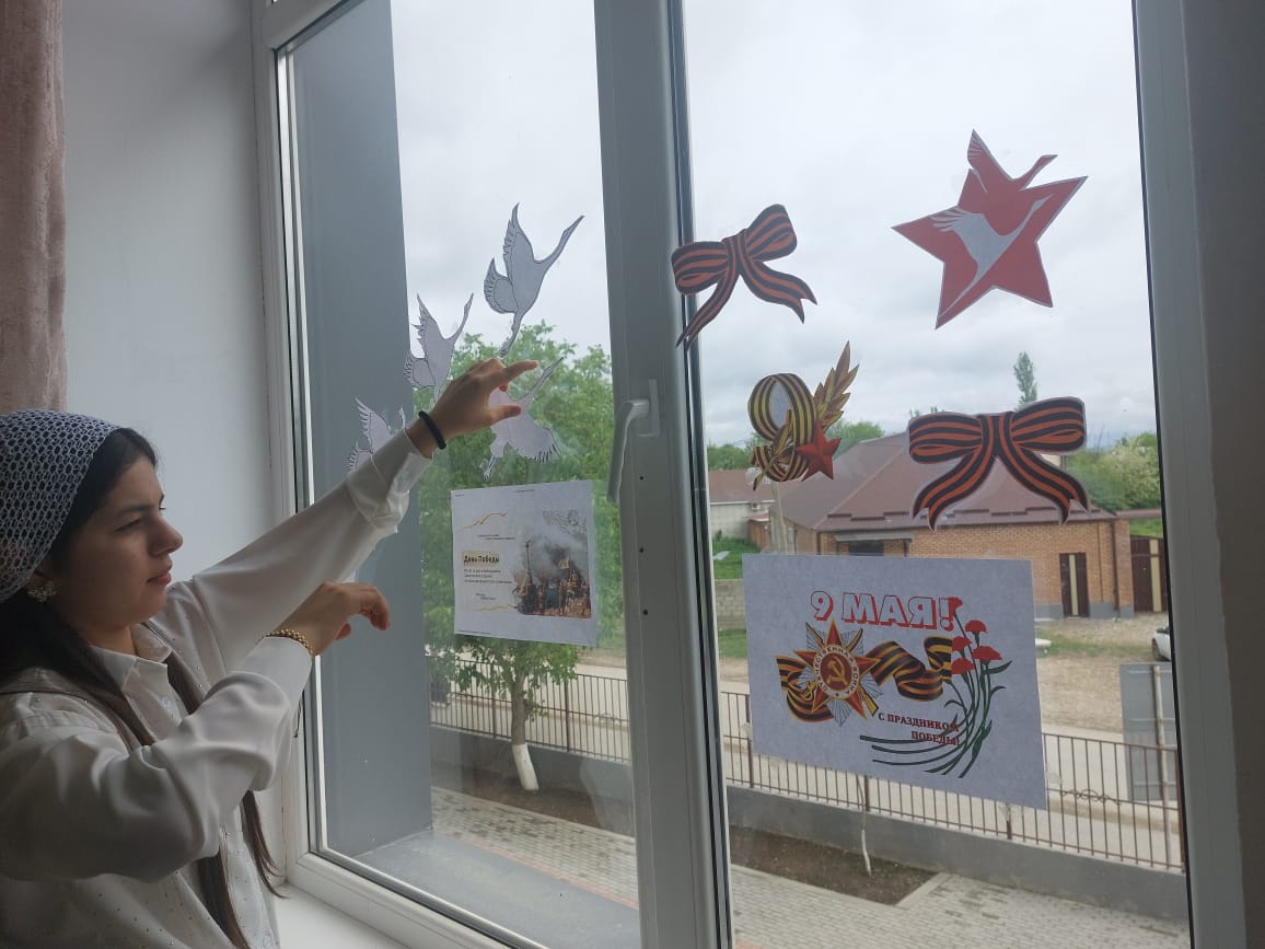 Всероссийская акция «Окна Победы» В преддверии 79 –ой годовщины Победы, МБОУ «Энгель – тЮртовская СШ№1 им.Осмаева У.Г.» присоединилась к Всероссийской патриотической акции «Окна Победы».