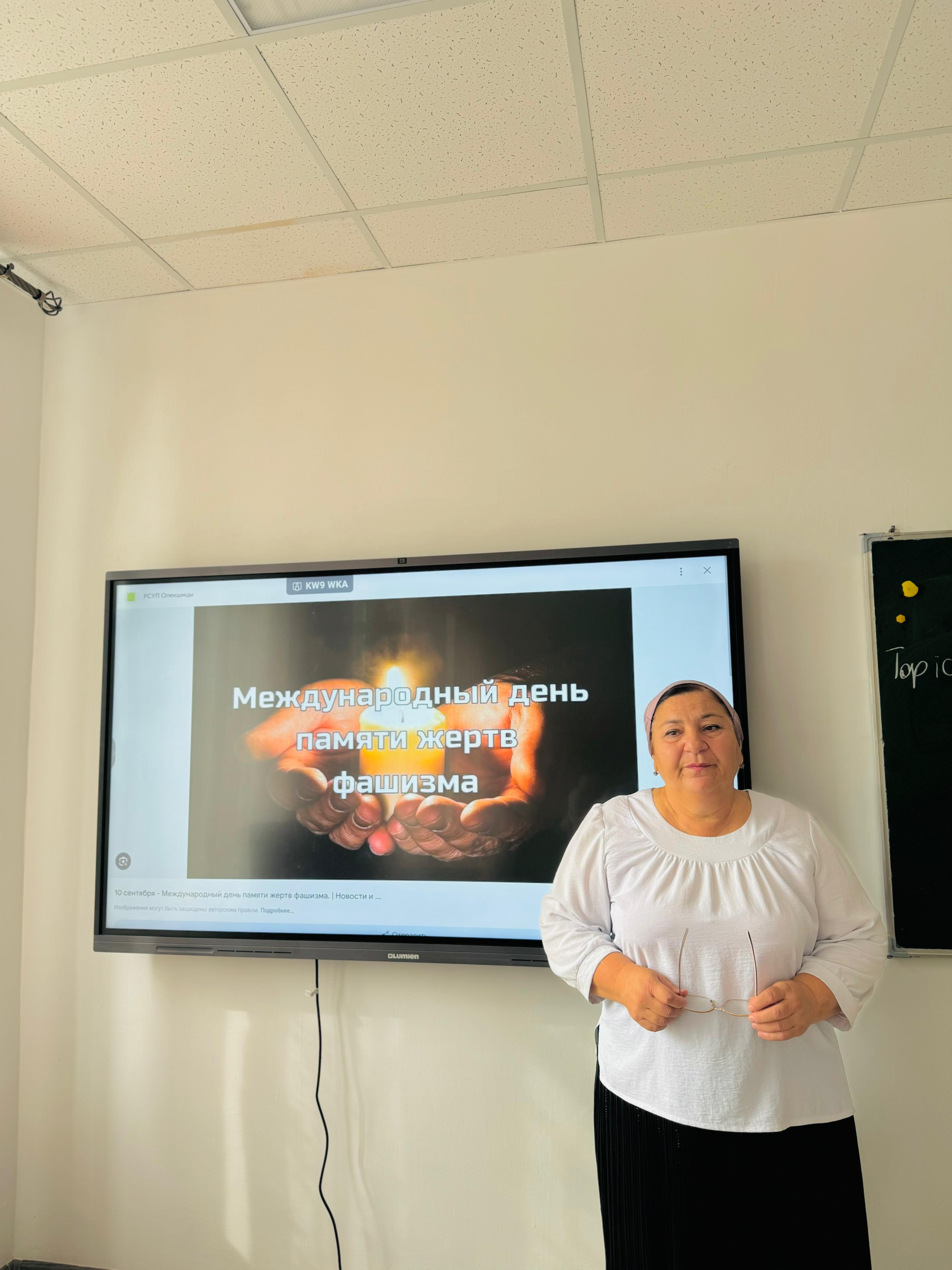 10.09.2024День памяти жертв фашизма. Международный день памяти жертв фашизма был учрежден в 1962 году по решению ООН и создан для того, чтобы не дать трагедии повториться, а жестокой и губительной идеологии — вновь захватить умы людей. Поэтому в этот день вспоминают не только тех, кто защищал Родину с оружием в руках, но и обычных людей, погибших от рук захватчиков. 9 сентября в рамках памятной даты для обучающихся 10 класса МБОУ «Энгель-Юртовская СШ 1 им.Осмаева У.Г.» советник директора по воспитанию провела классный час "«Памяти жертв фашизма посвящается..» В конце классного часа ребята почтили память 109 наших односельчан, погибших в годы Великой Отечественной войны минутой молчания.