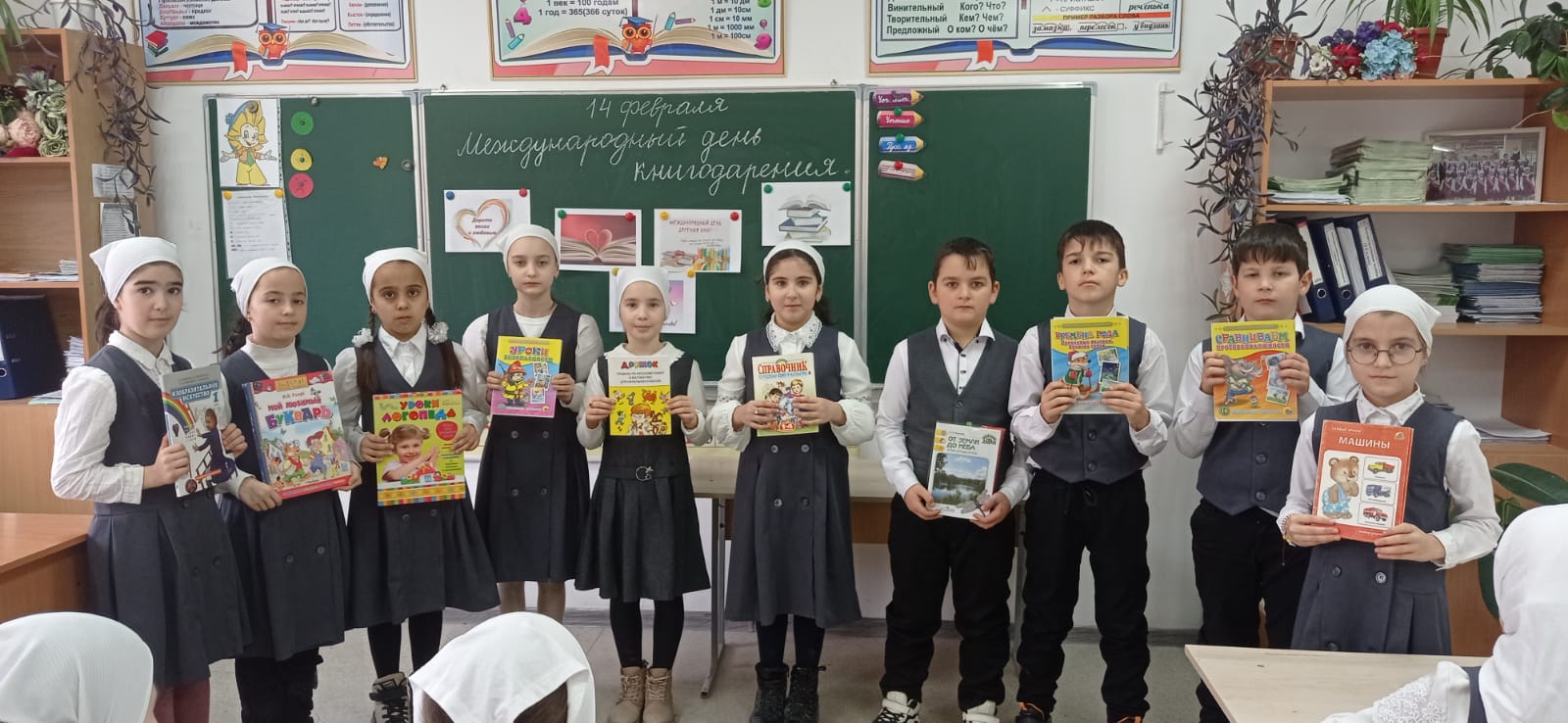 14 февраля —Международный день книгодарения. Этот праздник является одним из самых молодых в мире. Несмотря на это, он успел объединить всех, кто любит читать и дарить книги. Накануне советником директора по воспитанию Селимсултановой П.Б. в МБОУ «Энгель-Юртовская СШ 1 им.Осмаева У.Г.» была организована акция «Книжный друг».