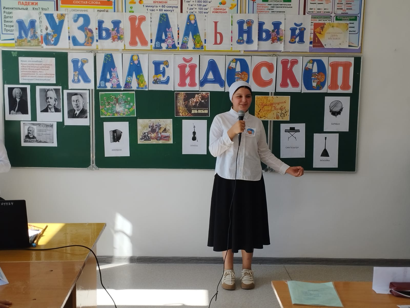 1 октября - Международный день музыки. В МБОУ «Энгель-Юртовская СШ 1 им.Осмаева У.Г.», в преддверии Дня музыки, прошли музыкальные перемены, в ходе которых учащиеся наслаждались звучанием классической музыки .Учительница музыки Гераева М.Г. провела познавательную беседу, на которой они узнали много нового и интересного о мире звуков, музыкальных инструментах и великих композиторах. Полученные знания ученики смогли сразу применить на практике, приняв участие в увлекательной викторине «Музыкальный калейдоскоп».