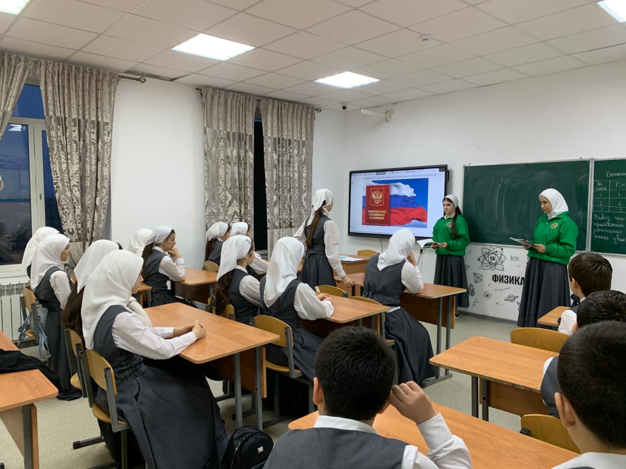 В рамках реализации воспитательного плана в МБОУ «Энгель –Юртовская СШ№1 им.Осмаева У.Г.» были проведены мероприятия, посвященные Дню Конституции РФ. Этот праздник отмечается ежегодно 12 декабря и яв