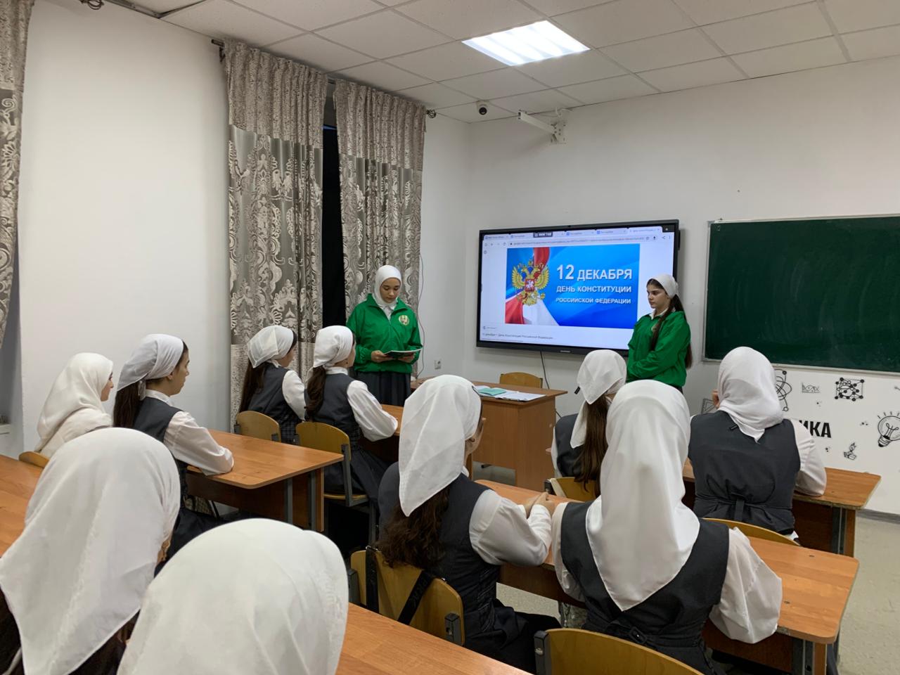 В рамках реализации воспитательного плана в МБОУ «Энгель –Юртовская СШ№1 им.Осмаева У.Г.» были проведены мероприятия, посвященные Дню Конституции РФ. Этот праздник отмечается ежегодно 12 декабря и является одним из важнейших государственных праздников России.