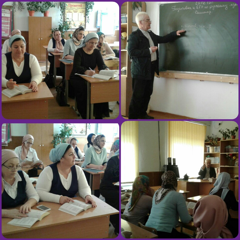 28.02.201828 февраля 2018 г.в МБОУ «Энгель-Юртовская СШ №1 им.Осмаева У.Г.» подготовлен и проведен семинар «Подготовка к ЕГЭ по русскому языку». Семинар провел учитель русского языка и литературы Музаев Ильяс Махмудович. Стаж работы 43 года. В практической части семинара учителя сами выполняли задания по КИМам.