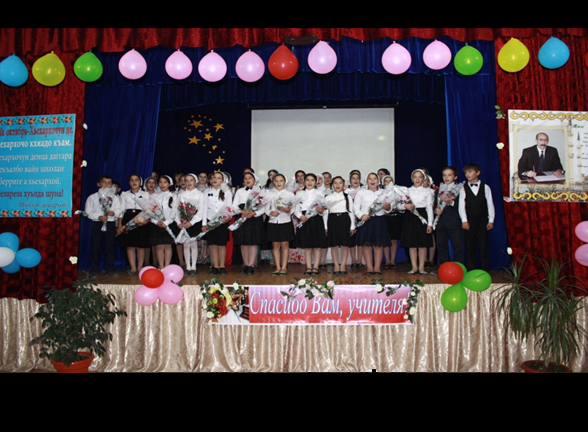 Эта знаменательная дата широко праздновалась в МБОУ «Энгель-ЮртовскаяСШ №1».Состоялся концерт под названием «Пока все дома». Здесь собрались дети, учителя и приглашённые гости: член Союза Писателей ЧР Рашидов Ш. Р., лучшие выпускники школы последних пяти лет, члены администрации села Энгель-Юрт, родительская общественность. Много тёплых слов в свой адрес услышали учителя-ветераны. Состоялись проводы на заслуженный отдых коллег, чествование совсем ещё молодых, приступивших в этом году к нелёгкой, но благородной работе учителя,педагогов.Неоценим в жизни школы труд директора. Именно от его деятельности зависит успешность школы. Вот уже 22 года Мосаев Д. Я. руководит нашей школой. Символично, что празднование юбилея пришёлся на День учителя. С глубоким уважением поздравили его соратники, коллеги и родственники.Такие мероприятия способствуют возрождению школьных традиций, развитию талантов и способностей учащихся, созданию положительного эмоционального настроя, пробуждению интереса к познанию действительности и к общению. Дети во всём блеске в своих выступлениях в заключительном слове пожелали присутствующим: Свершений творческих На ниве просвещенья, Полёта мысли, долгих, ярких лет, И быть вам нужными своей Отчизне, Ещё полсотни быстрокрылатых лет. Заместитель директора по ВР: Абдулмежидова М.Н.